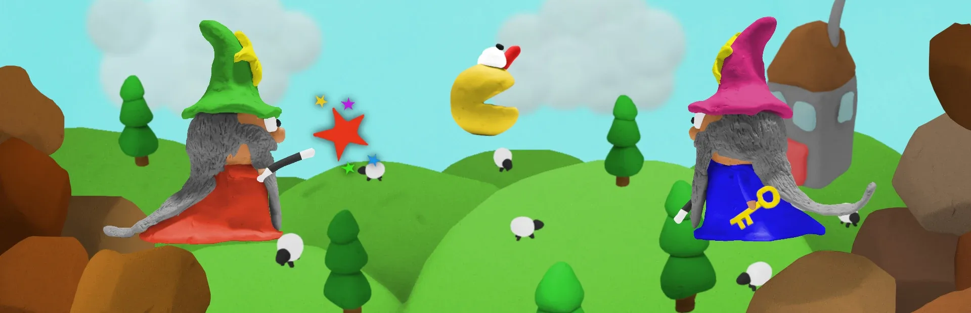 The Wizards Who Fell In A Hole is a one- or two-player platform game in which each player controls a wizard who can jump and shoot at a variety of monsters, with the aim being to kill all monsters on a level before progressing.