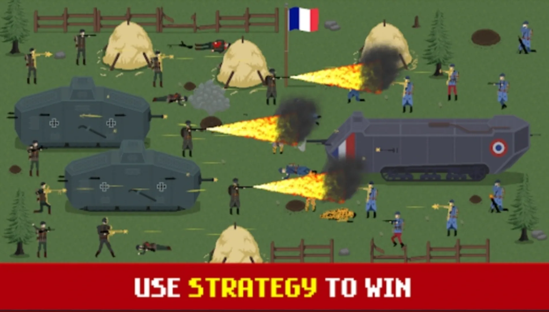 As a WWI general, command your army across trenches in the Eastern Front and Western Front, experiencing real-life historical battles as both the Allies and Central powers. Engage in real time strategy (RTS) where your objective is to select the right combination of soldiers and tanks to conquer the enemy trenches. Survive wave upon wave of enemy soldiers as they try to gain supremacy and use tactical artillery strikes to support your army. Choose your side from a variety of WWI nations including the British, Germans, French, and Ottoman military. Simulate battles such as Somme, Verdun, and Gallipoli, experiencing total war. In Trench Warfare WWI your goal is to gain supremacy by capturing the enemy trenches and seeing your nations flag wave in the wind. Use RTS strategy and battle alongside your allies army in the trenches of total war!