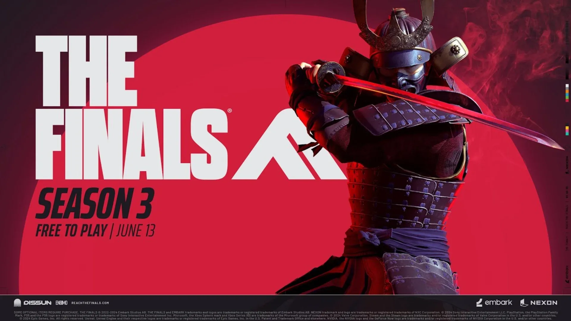 Season 3 was the third season of THE FINALS. It launched on June 13, 2024, and ended on September 26, 2024. It was revealed on June 7, 2024, at Summer Game Fest. The season followed a predominately Japanese theme. This season was sponsored by ENGIMO, introducing the all-new arena Kyoto and the tournament series World Tour, alongside OSPUZE, which sponsored the OSPUZE Expo, and DISSUN. New content introduced in Season 3 includes: - Arena: Kyoto - Game Modes: World Tour, ranked Terminal Attack - New cosmetics - New Battle Pass - Weapons: Recurve Bow, Dual Blades, Spear - Gadget: Thermal Bore - Specialization: Winch Claw - Progression: New career levels - Team text chat on PC