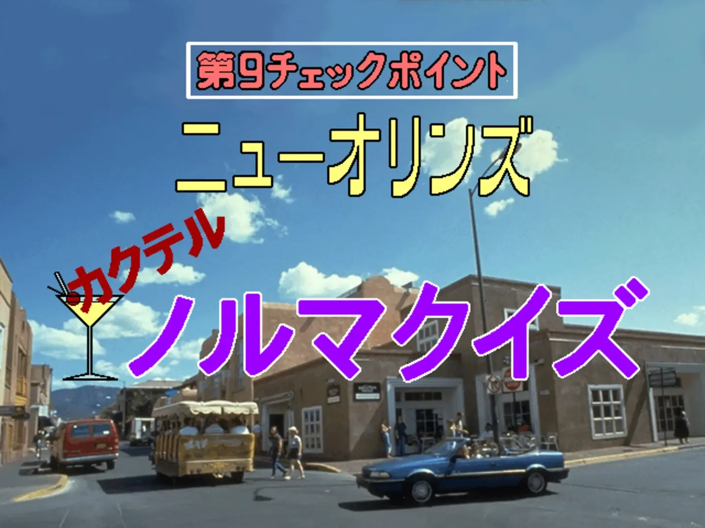 America Ōdan Ultra Quiz is based on the Japanese TV show of the game name. Like the original show, the game focuses on trivia questions solely related to the United States of America. Areas of knowledge include history, geography, culture, literature, sports, language, and others. The main quiz show takes place in New York and involves questions in random categories. A special travel mode allows the player to visit various locations in the USA, including notable airports, beaches, sports stadiums, and other popular travel destinations. Each of these locations has its own challenges in additional to the trivia questions. For example, in Las Vegas the player's answers are further configured by a slot machine, in Santa Fe the player is prompted to run a certain distance by rapidly pressing keys, etc.