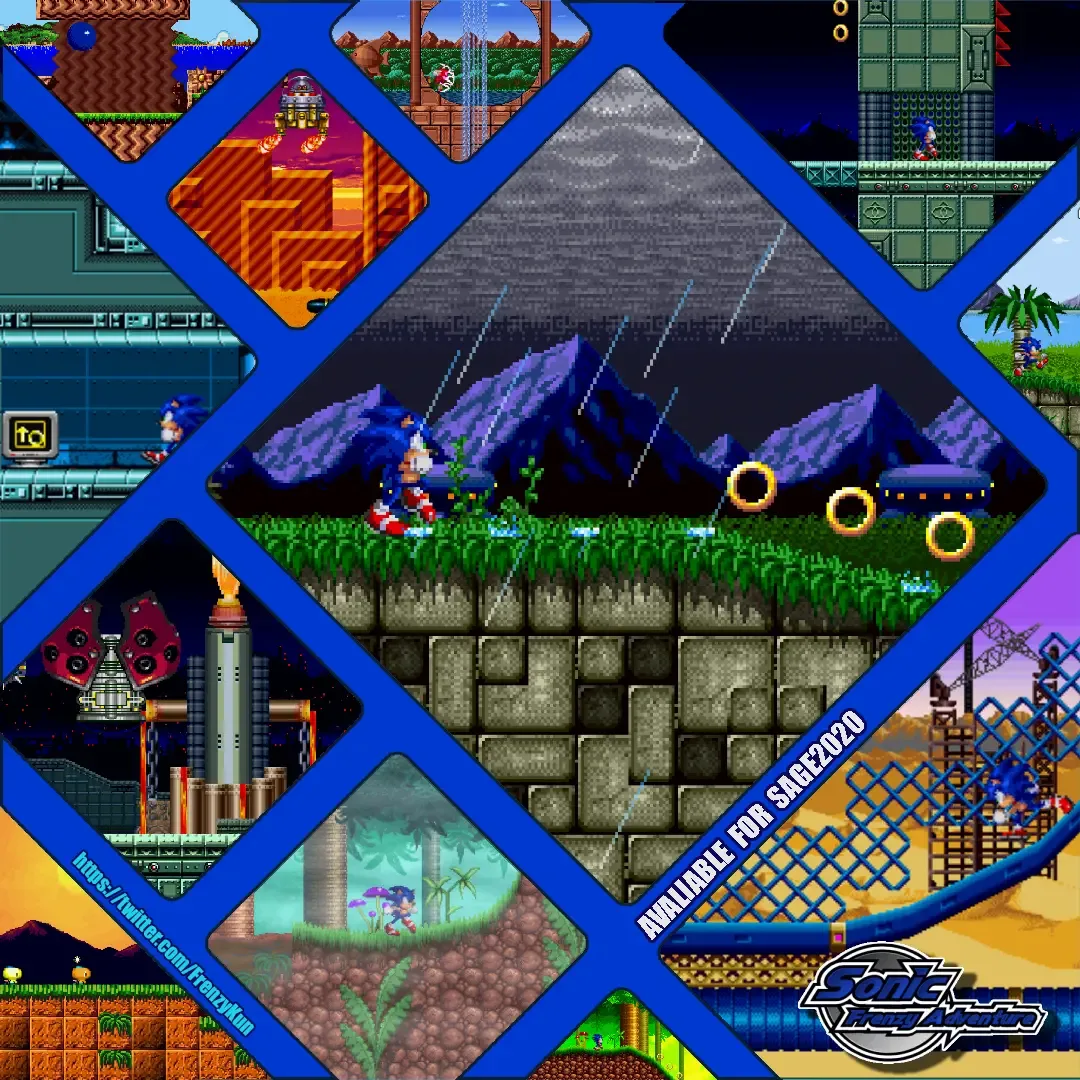 Sonic Frenzy Adventure is a retro-style fangame developed since 2004, featuring 11 zones and 5 playable characters, including two original ones. The game introduces unique mechanics such as a revised ring system with four levels, various shields with passive effects, and special powers exclusive to Sonic. Players explore each zone, ending in a boss fight, with a storyline focused on defeating EggRobo's mechanical empire. Achievements track high scores and hidden collectibles, and the game offers character-specific routes and challenges.