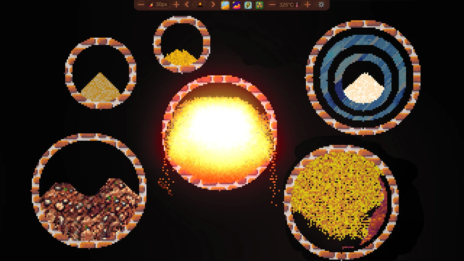 Sand in a Box is a 'falling sand' game that simulates thermal flow, electricity, radioactive decay, and gravity. Create art, experiment with physics, and craft your own simulation rules with user-friendly mod support!