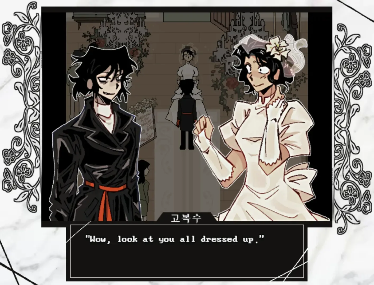 Married in Red is a short 2D RPG thriller-story game with visual novel and point-and-click elements set in South Korea that follows the story of Bok-su Go visiting her old friend from University, Da-jeong Choi, on her wedding day.