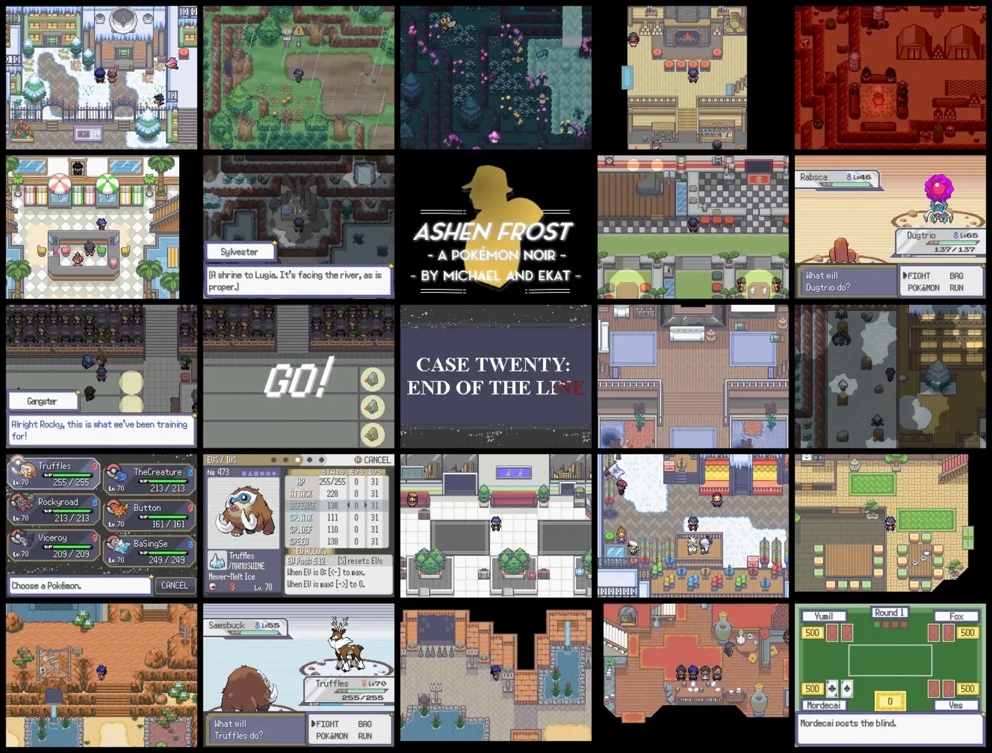 Pokémon Ashen Frost, formerly Pokémon Present, revolves around Sylvester, a kind, albeit surly, officer-turned-detective in Riverview City. Sylvester works alongside his not-quite-canine unit, Swinub, to solve minor cases. Tracking down missing cheques and ice sculpture vandals doesn't come without risks, however; the frigid metropolis is home to ordinary people and criminals alike. To uncover the truth, Sylvester steps on the toes of some of the city's most important figureheads... as well as the mafia's.