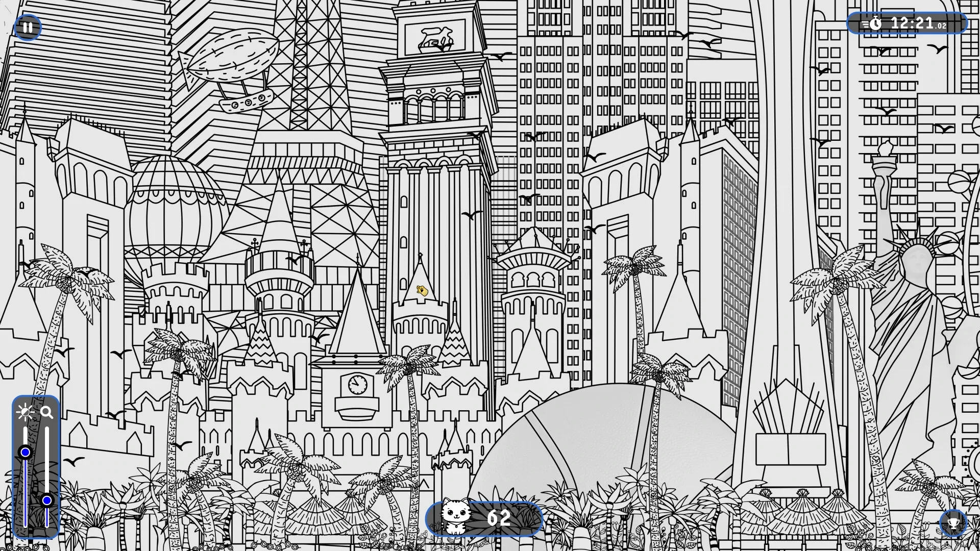 Find and discover 101 cute cats hidden throughout the Las Vegas landscape in this hand-drawn hidden object game. Can you find them all?
