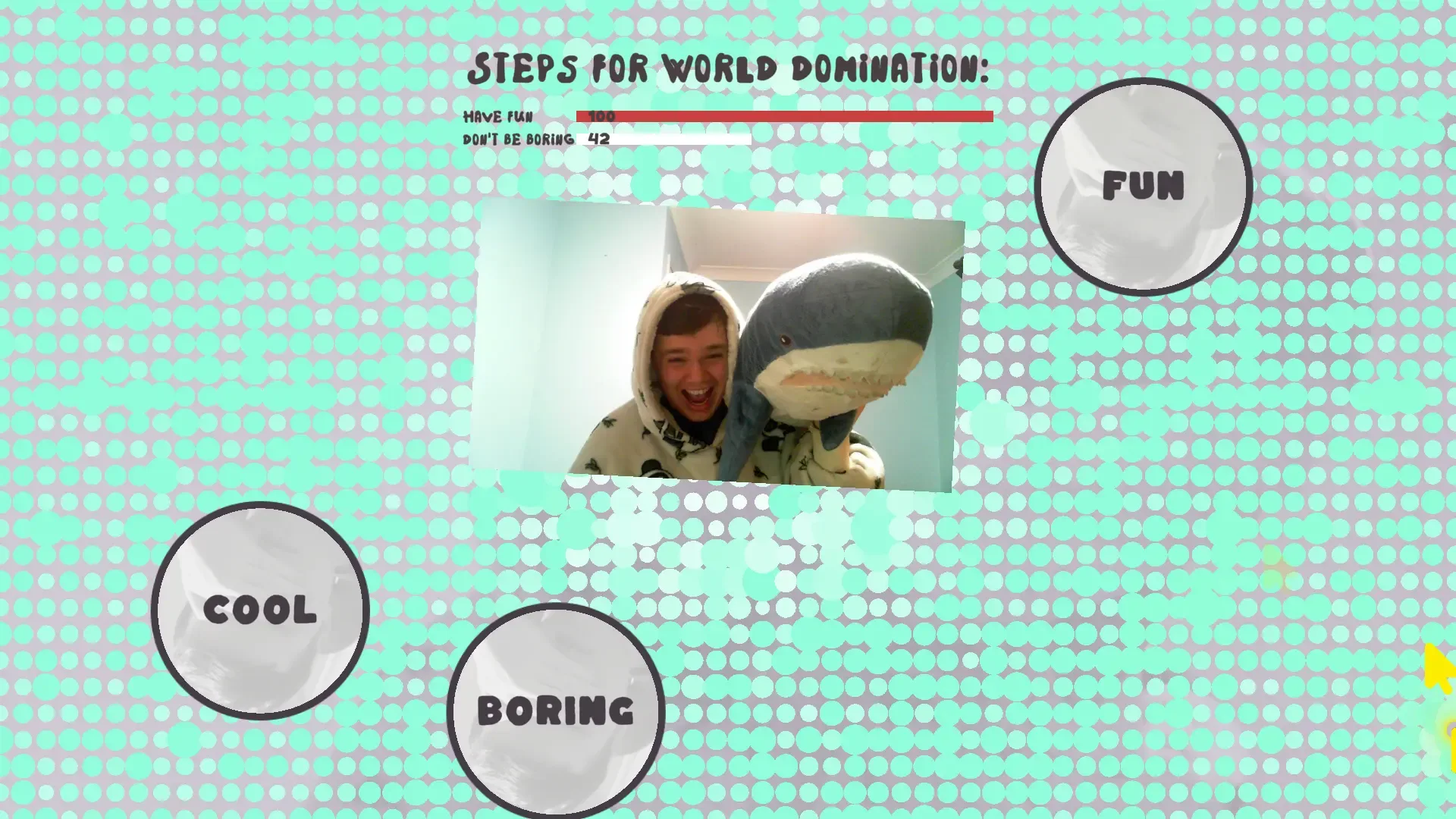 World domination is not easy. Join me as we figure it out together. I think it kind of goes like this, yeah that's the way, you're killing it! A sort of boss battle, sort of actiony game, but don't worry, you can't die! Move the mouse around to trigger actions with the beat.