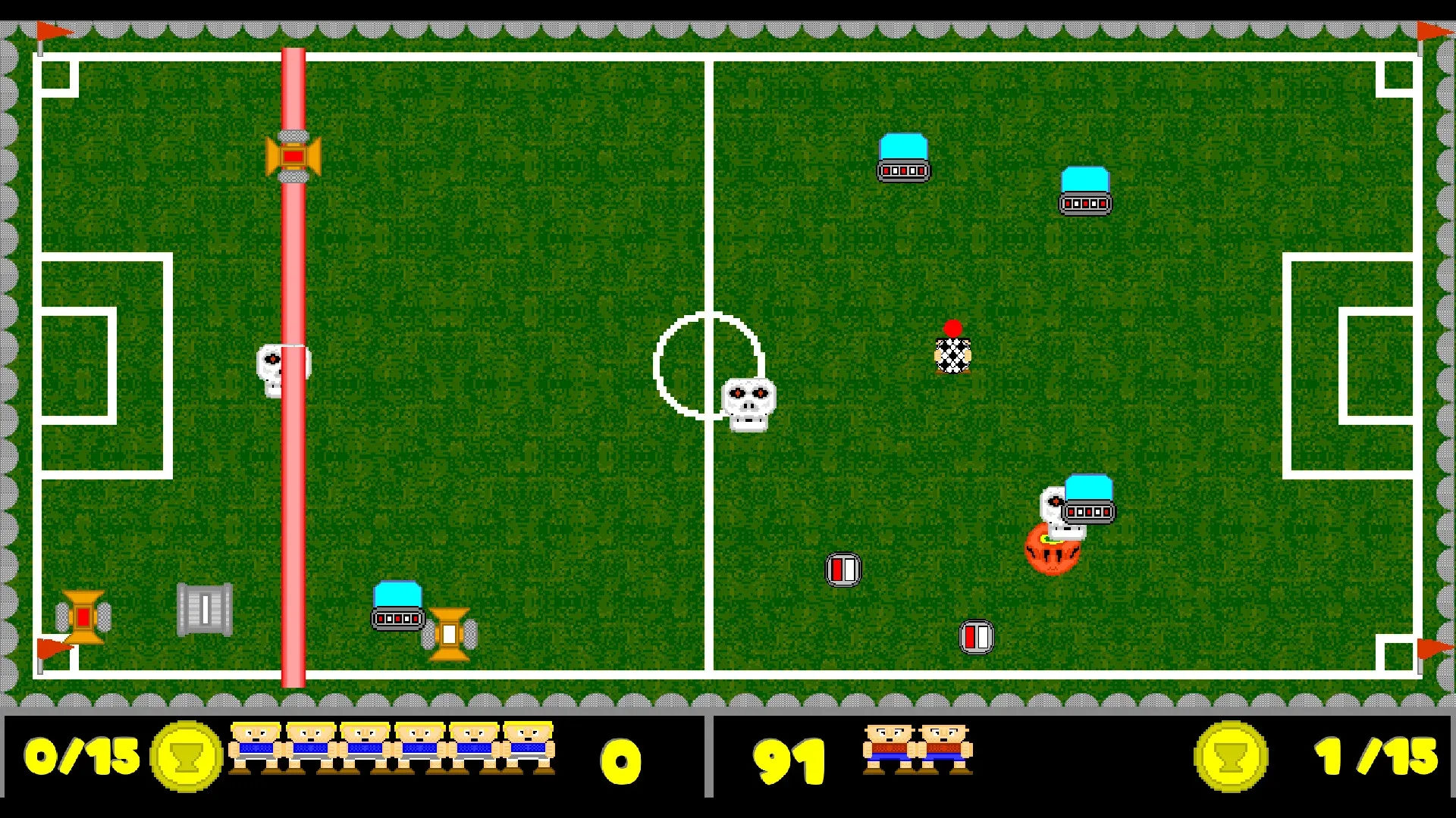 The great world football event is being held. What no one counted on was that the world would suffer the alien invasion and the machine revolution at that time. Only the most skilled footballers will be able to stop this. Destroy any alien bug that crosses your path with balls. 1 or 2 players.