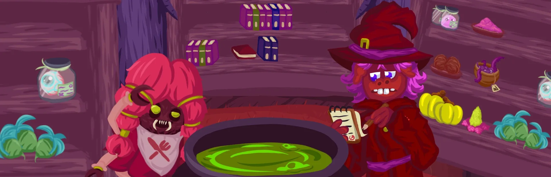Cauldron Caution is a Point & Click adventure centered on Card battles ! Fight against cartoony monsters with your Magic Creatures & Ingredients ! Find hidden Booster Packs by exploring this wild world to improve your collection ! Meet quirky characters and solve diverse puzzles along the way !