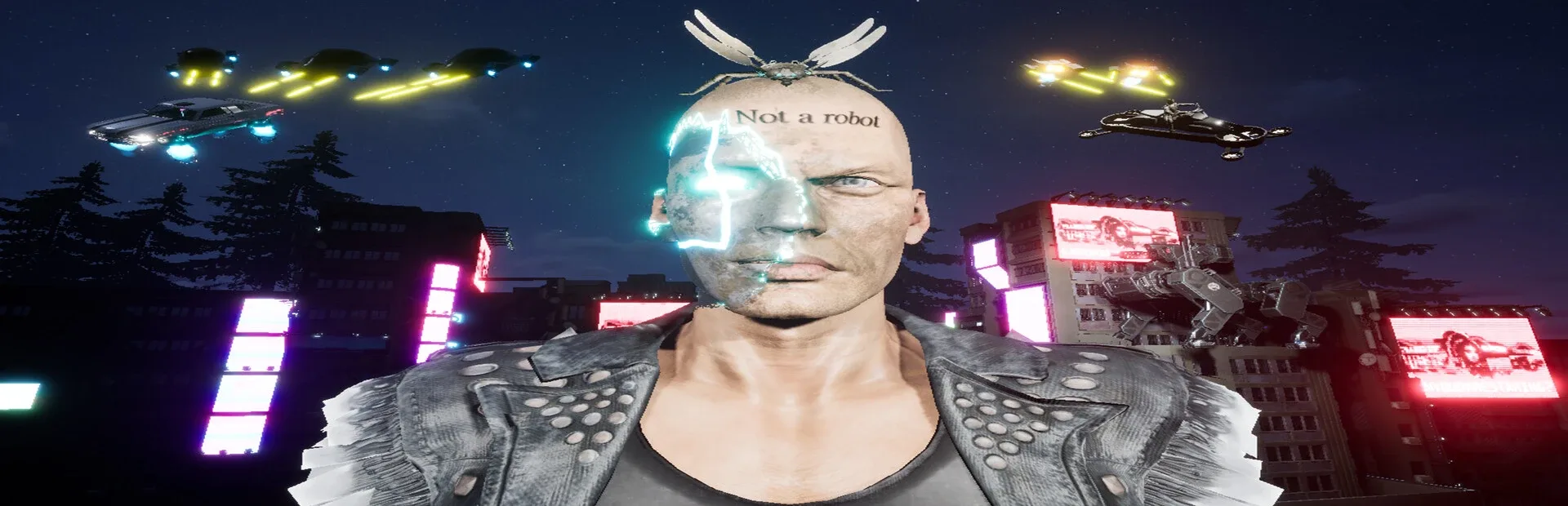 You envision a futuristic scenario where humans coexist in an open world alongside robots disguised with human-like skins, equipped with dynamic and adaptive system where AI learns from previous engagements, adjusts tactics, and becomes increasingly proficient in combat scenarios.