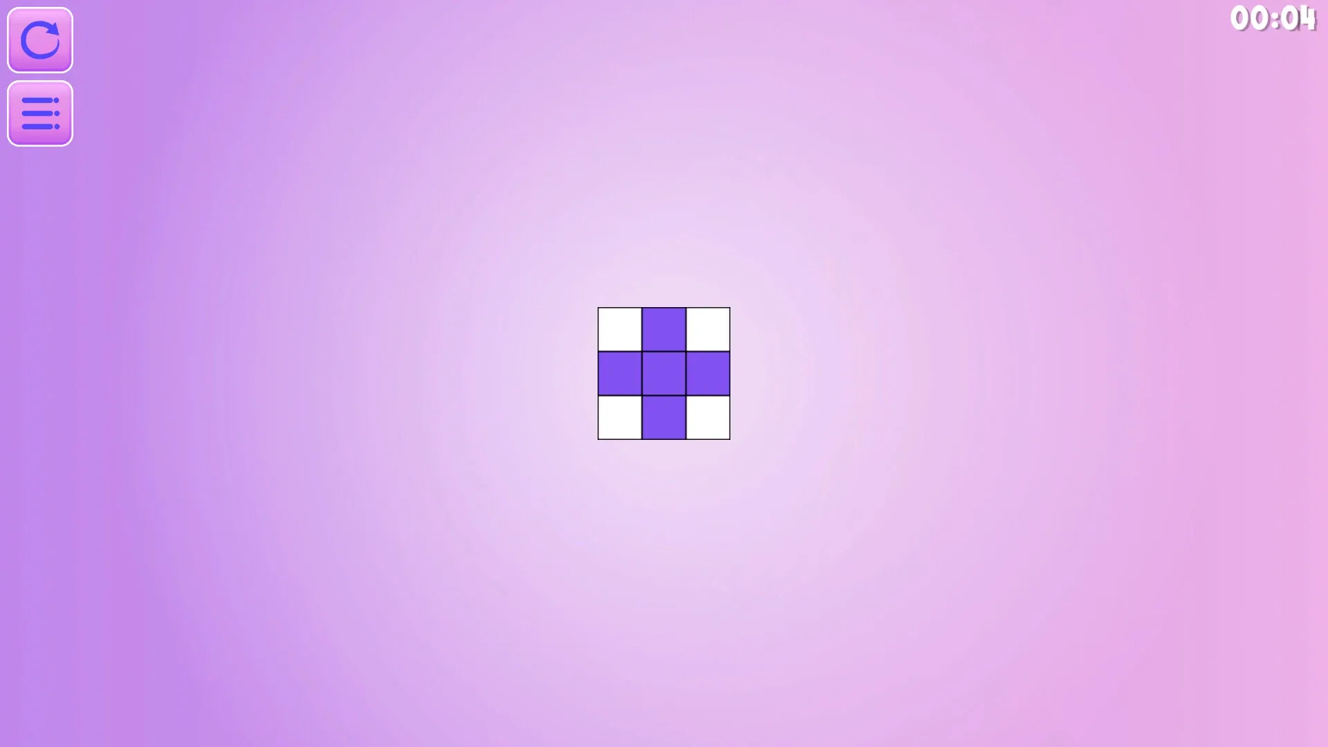 A simple and difficult puzzle game where you have to turn all the squares purple.