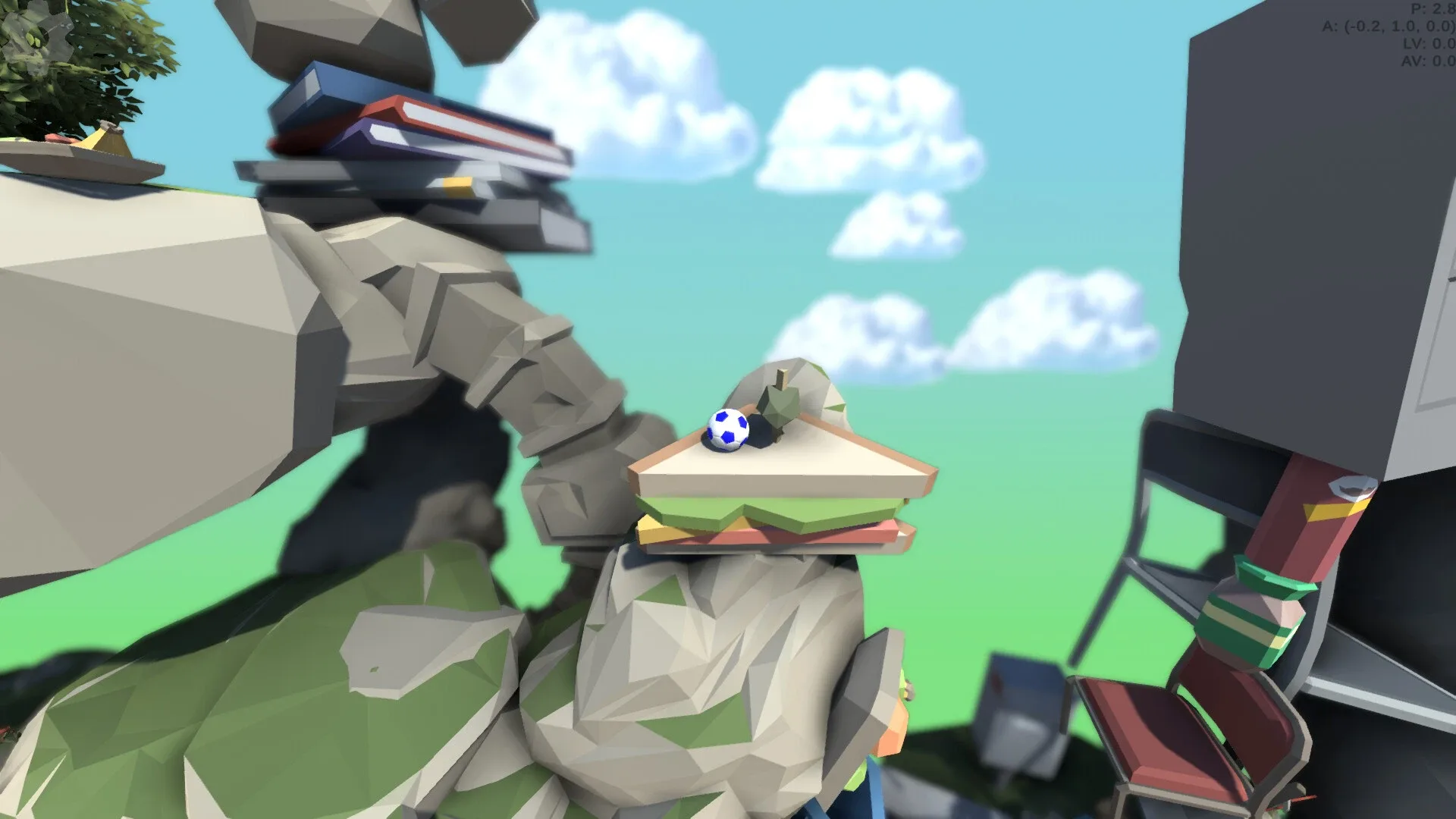 Game inspired by Getting Over it. Kick the ball over mountains of stuff to reach the end.