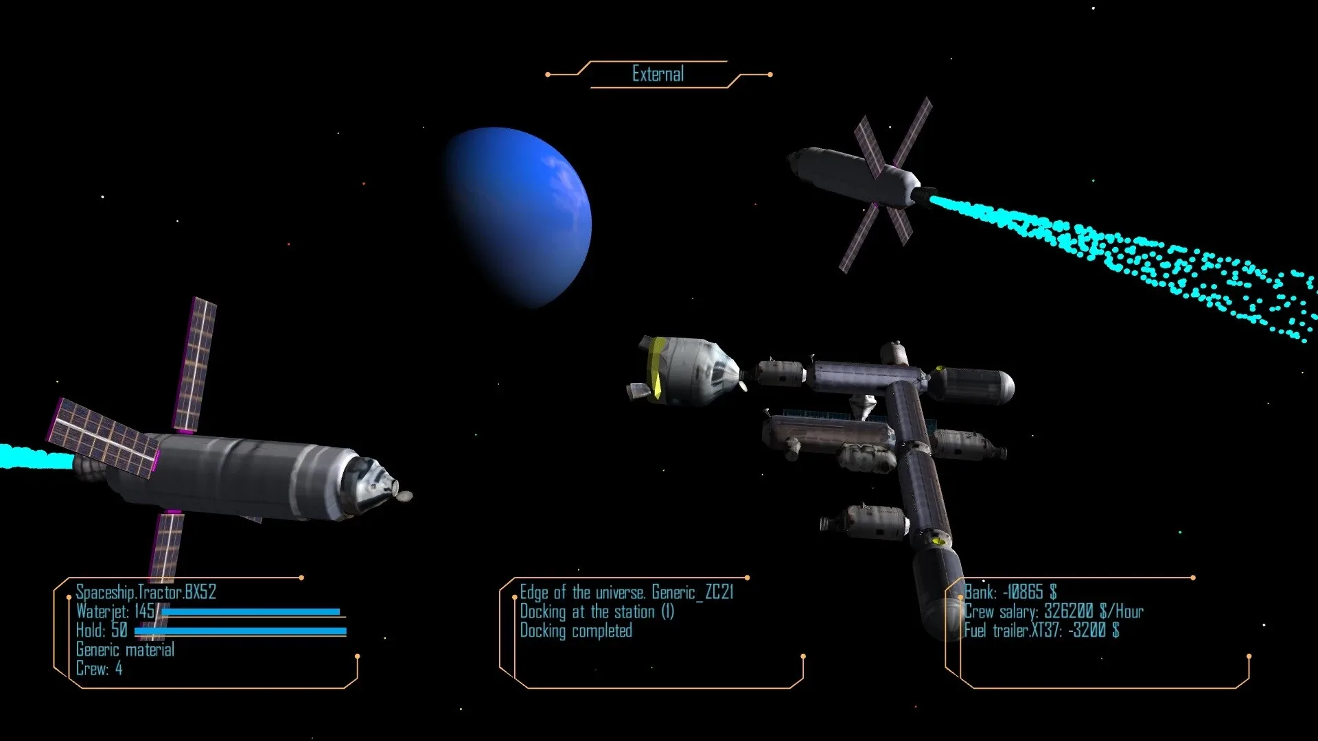 This is a game set in space and focused on trade of resources between spaceships and space stations.