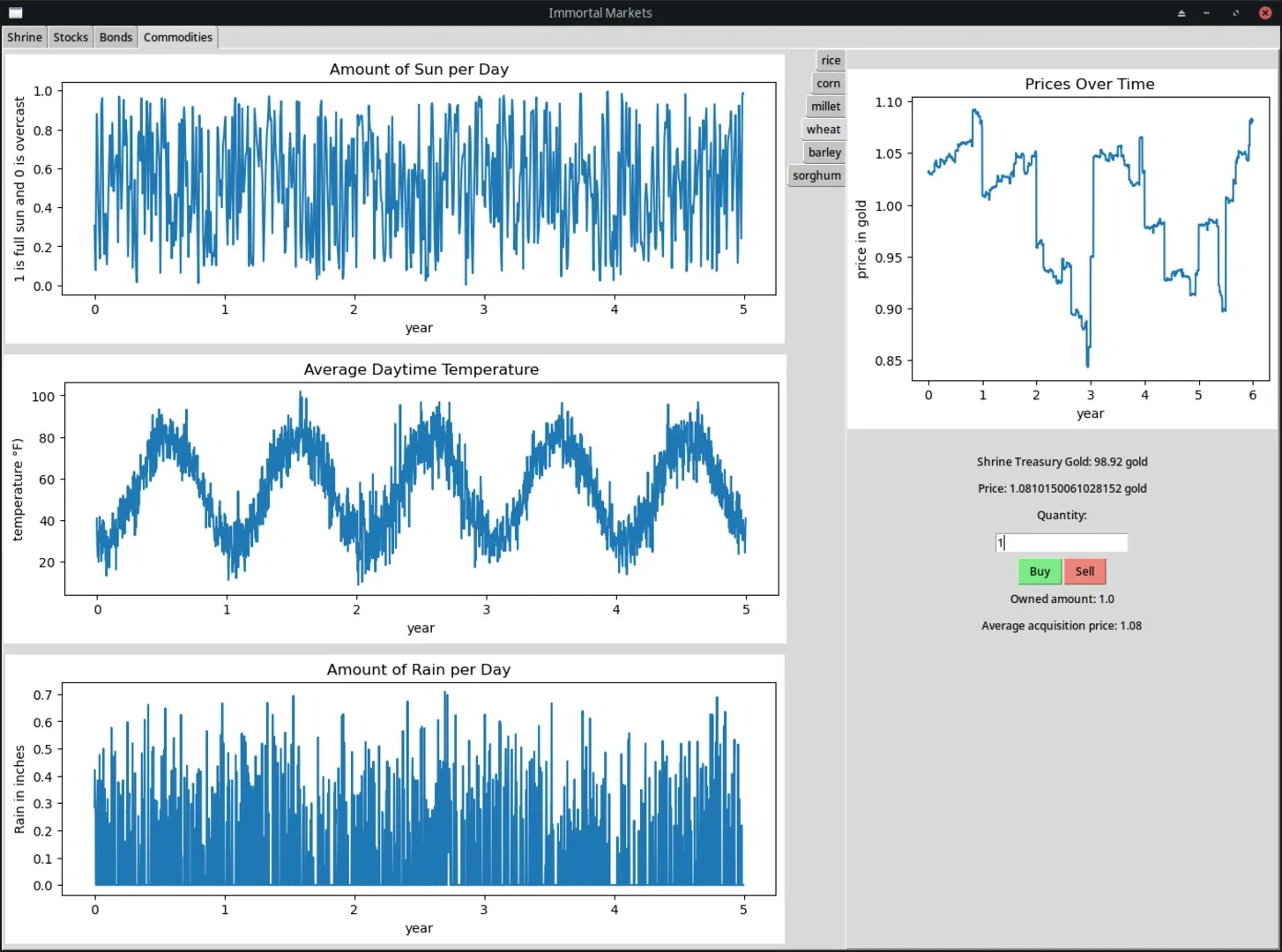 In this game, you play as a deity that can gamble their shrine treasury on various financial instruments, including stocks, bonds and commodities.