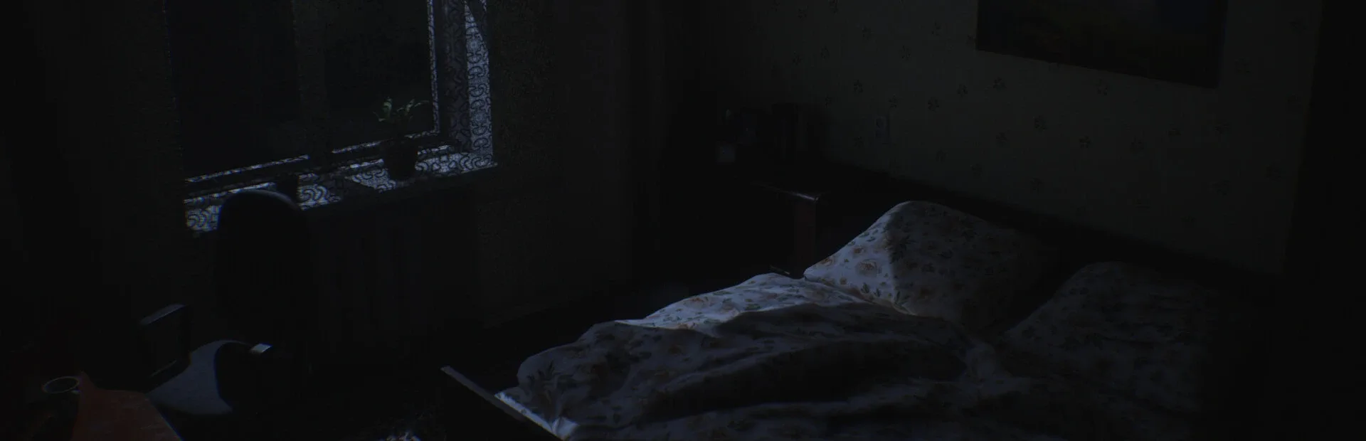 A first-person horror game dealing with sleep paralysis. You are lying in bed, unable to move, experiencing creepy phenomena and having to survive until morning from ghosts.