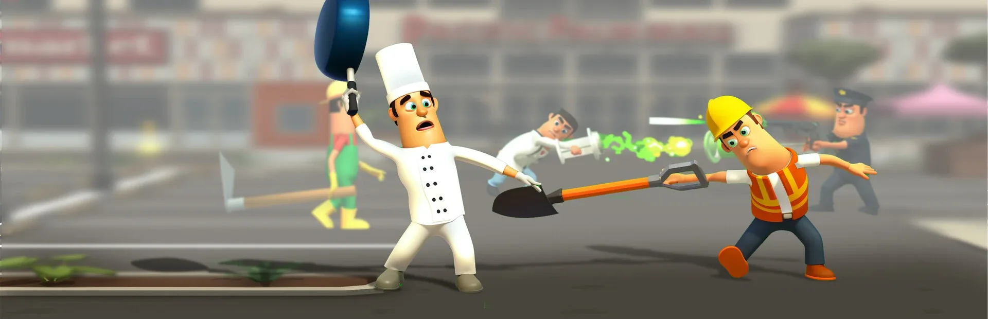 If there was the war between professions, which side would win? Chef, Cameraman, Police, Singer, Farmer or other professions…?Use silly weapons like a pan or a spade, balloon ,pencil, needle, chicken, buffalo... 20 different job Will create a chaotic surreal physics effects on funny match 5vs5.
