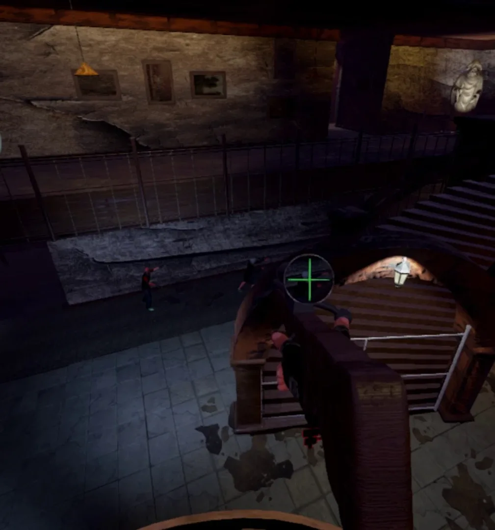 Immersive SP and Coop MP VR COD-style zombie shooter with free-range or teleport motion, area unlocks and upgrades. Various other game modes like Sniper Defense, Onslaught, shooting range, raining heads. Realistic gun and melee combat including sniper rifles and swords.