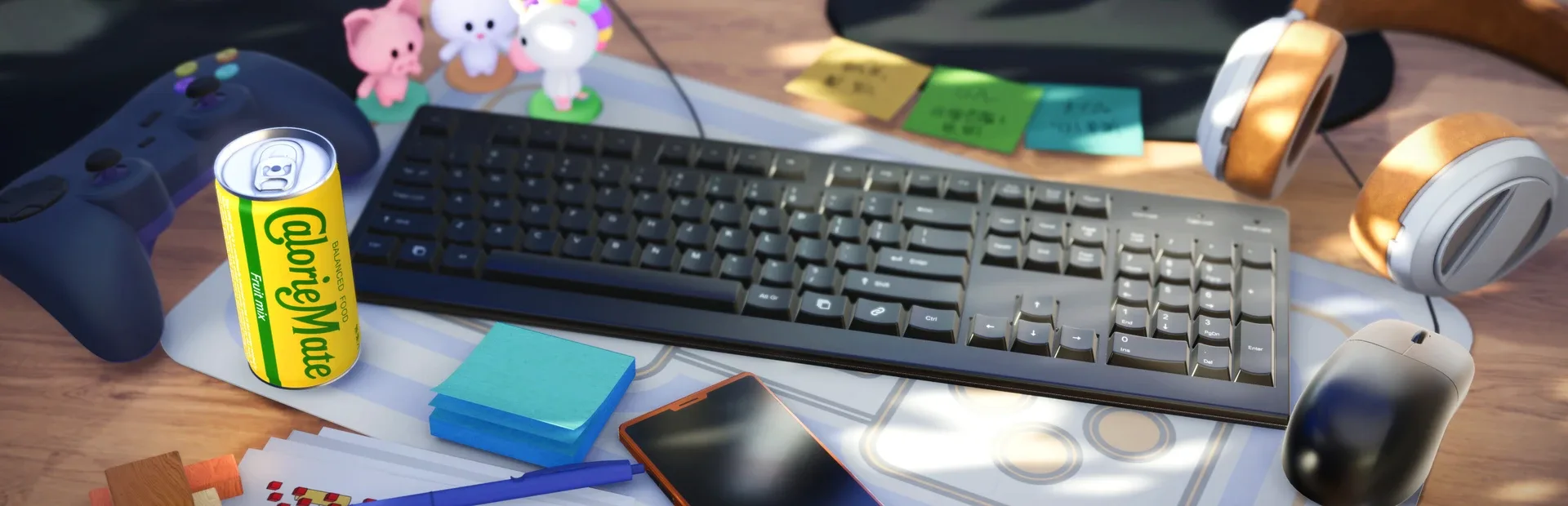 Transform into a can of Calorie Mate LIQUID that jumps out of the fridge and deliver nutrition to a game creator hard at work. This action-adventure takes you on a journey through an apartment room.