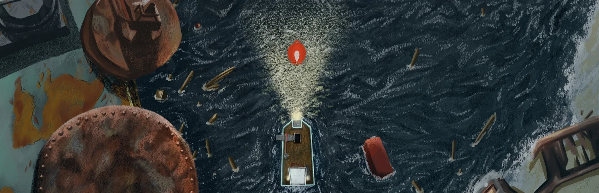Drive your boat through a desolate post-apocalyptic landscape and try to find all the pots to return home. Something is waiting for you hidden under the water.