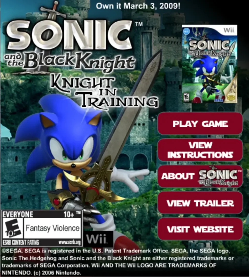 Sonic Knight In Training is a browser game released on the Neopets website in February 2009 to promote Sonic and the Black Knight. The player controls Sonic the Hedgehog, armed with Caliburn, in the center of an isometric corridor with crossroads pathways. The game is a reskin of Lego Star Wars II: Blaster Battle, another sponsored Neopets game previously released in 2006 to promote Lego Star Wars II: The Original Trilogy.