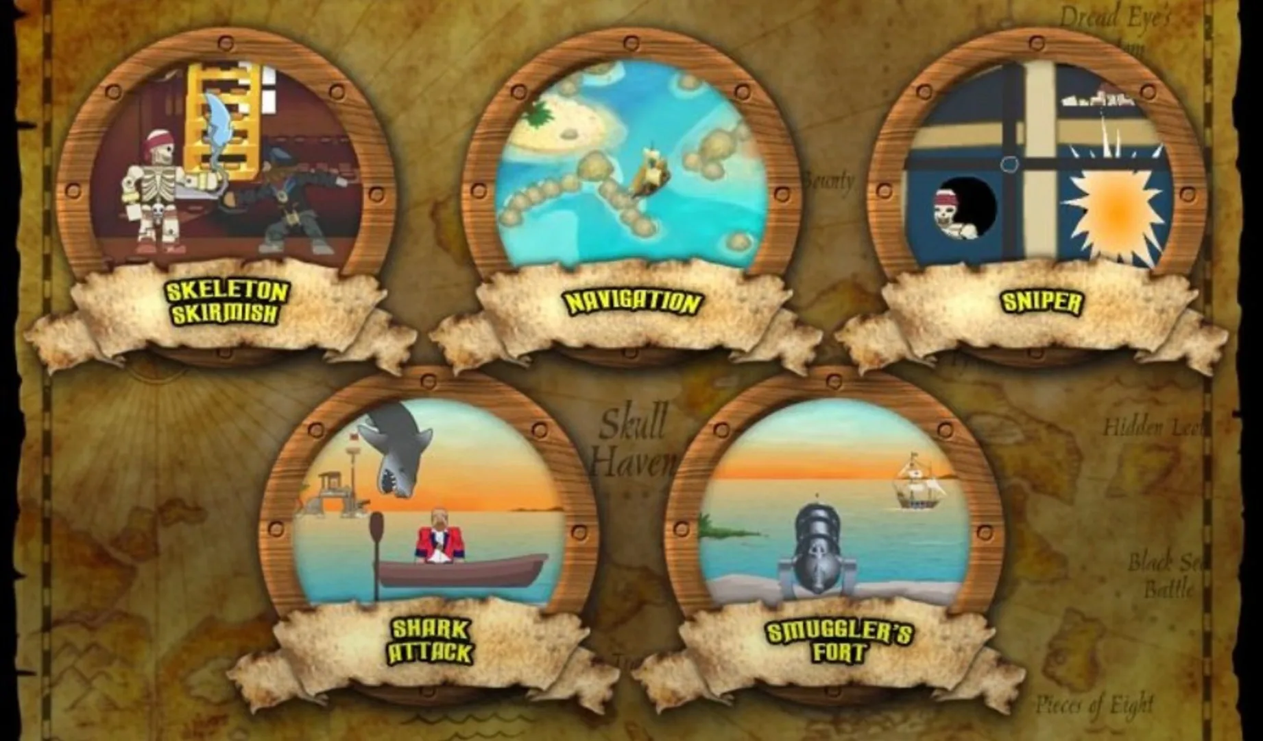 Play any of the included five Mega Bloks Pyrates minigames to earn Pyrate merits.