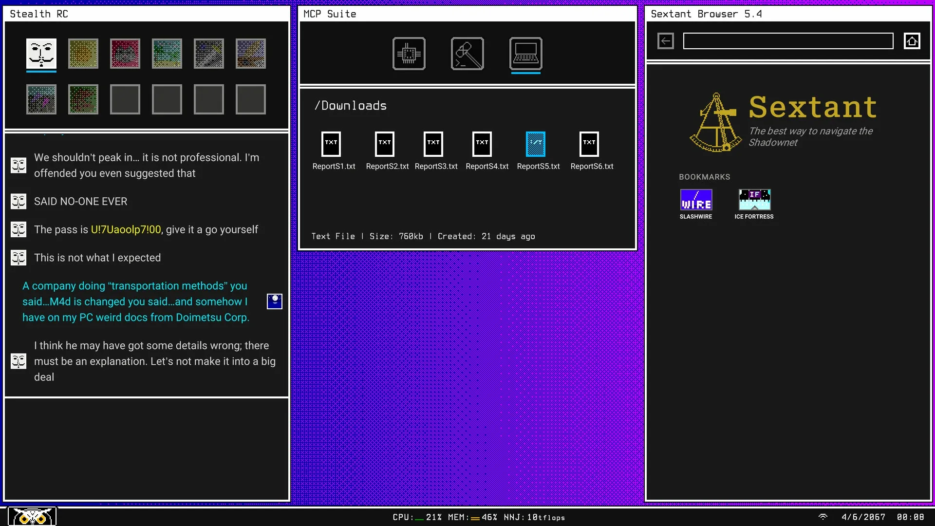 An interactive story about hacking, unveiling secrets, chatting with people, and searching for purpose.