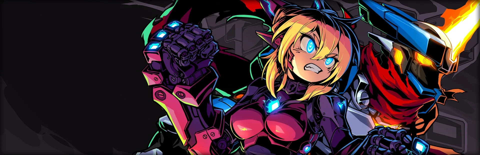 "Super Alloy Crush" is a 2D side-scrolling fighting action game. Play as Kelly and Muu (No.02) to defeat enemies and obtain treasure! Join hands with friends and take on challenges together!