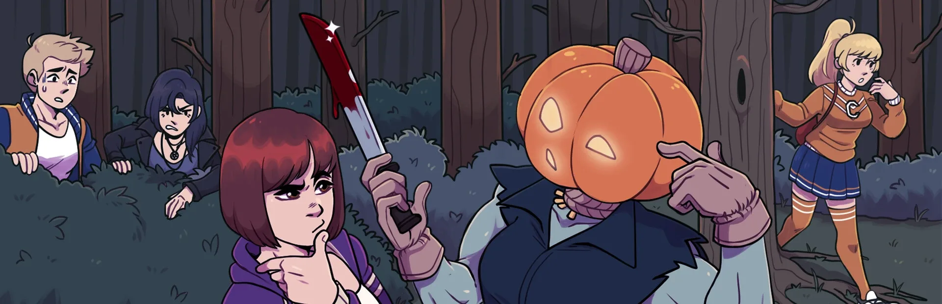 Find the clues to make a time bending turnabout in this off the rails visual novel about murder, mayhem, and a thicc pumpkin girl with a machete.