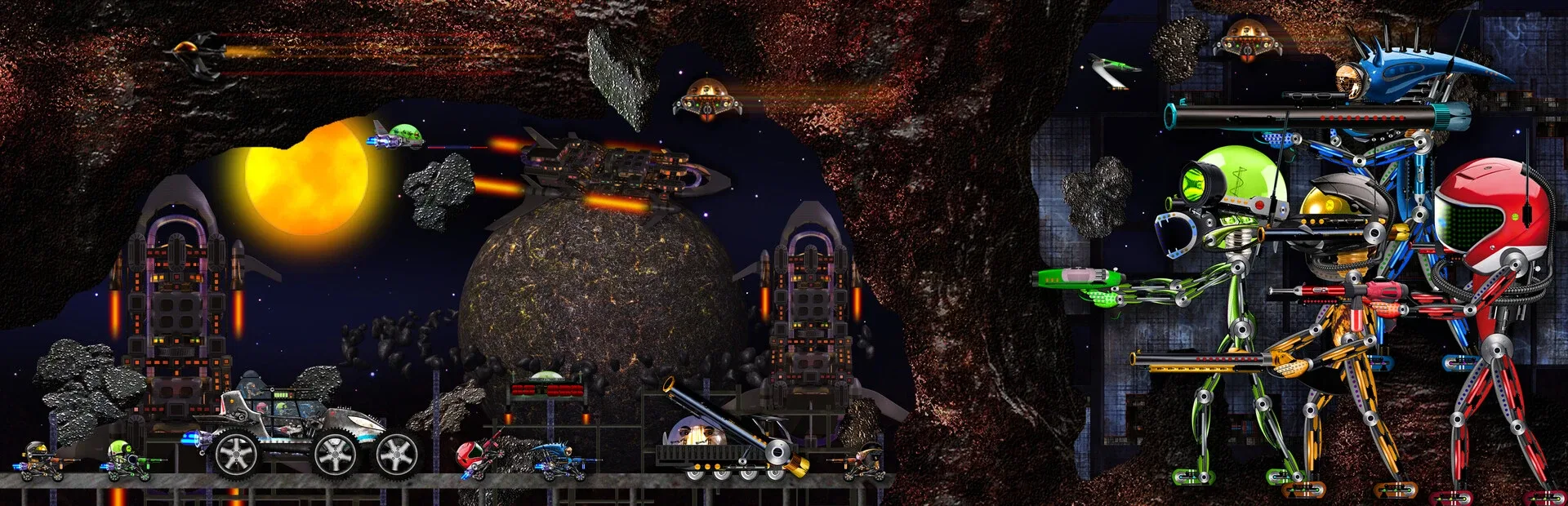 Action Game. Robots, Space Ships, Moon Car, Motorbikes & Jet-Pack. Space War - Save the Humanity. Kill the Aliens and Enemy Robots. Complete the Missions.