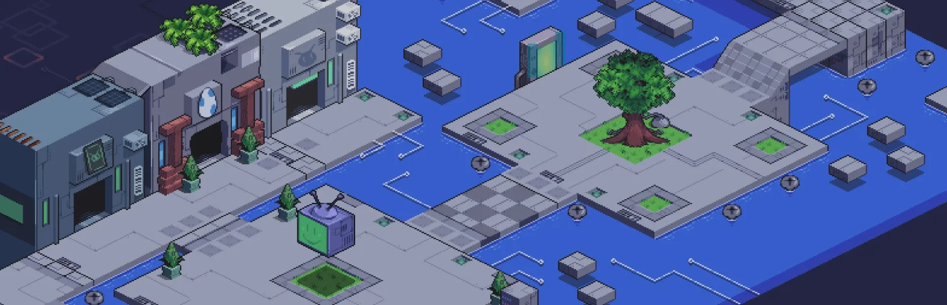 Isometric card battler RPG with a touch of virtual creatures, set in a futuristic, digital world, with over-the-top villains and a very shadowy plot.