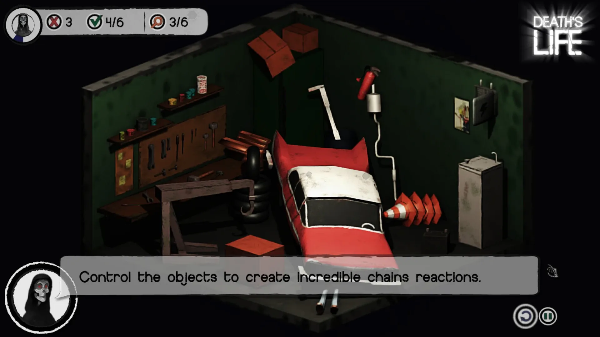Now you’re the new apprentice for Death. And it's your job to help gather souls. Only thing is, you can't just go and kill people to get the souls, it has to look natural. Like an accident. And that means setting up bottles, knives, brooms, and other regular objects in such a way as to create deadly chain reactions. Try a day in Deaths Life. Dying has never been more fun!