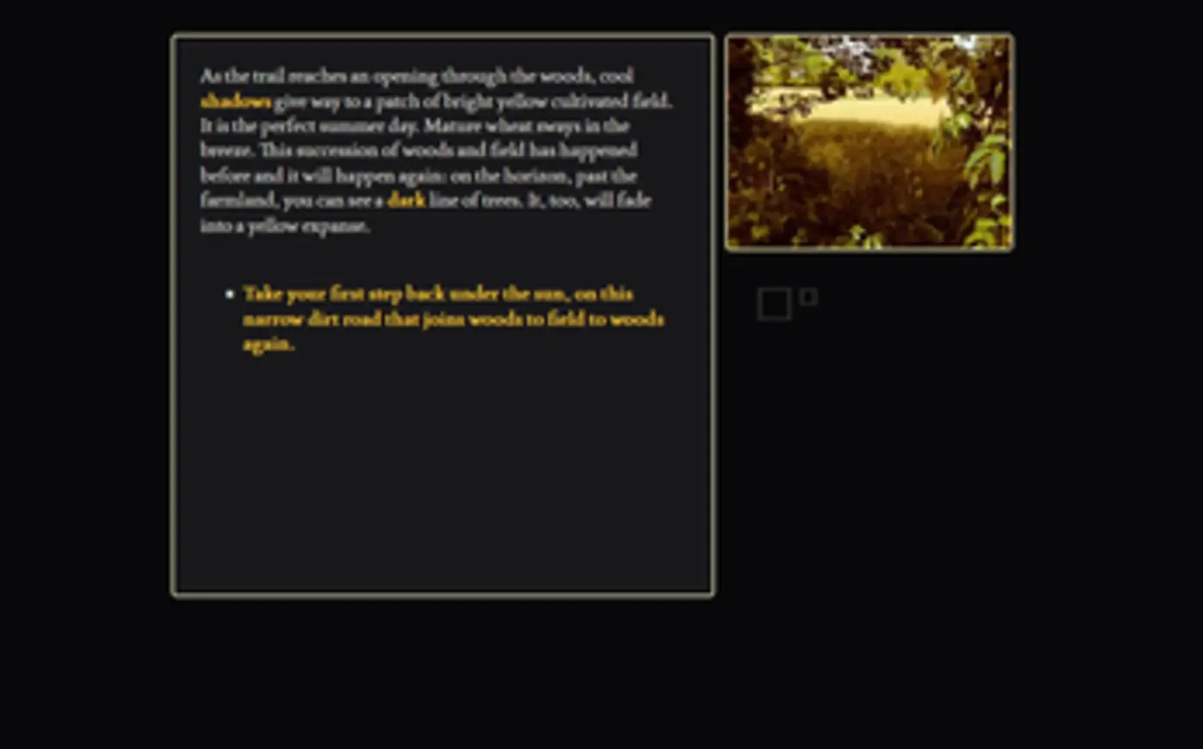 The enigma of the fields. Unknow a shape. Consider the idea of a black storehouse in a yellow field. Charred walls. Painted walls. Walls smudged in black ash. Maybe consider an unreal crop. Or consider, observe, establish, evaluate an above-ground pool. Which would be an odd find, right here in the middle of a field, but then again, that structure in the middle distance has got to be something... An absurd, alienating game developed as part of the Briefs series, a gold extra project with additional support by Strange Scaffold.