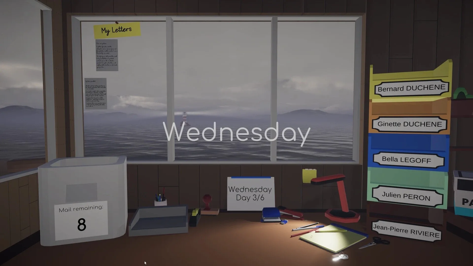 Lern Island Letters is a short narrative game where you play as a postman, sorting the mail of the five intriguing residents of a remote island. Pick up on their peculiar habits through hints on the envelopes, discover their secrets, and try to save this peaceful haven from its fate.