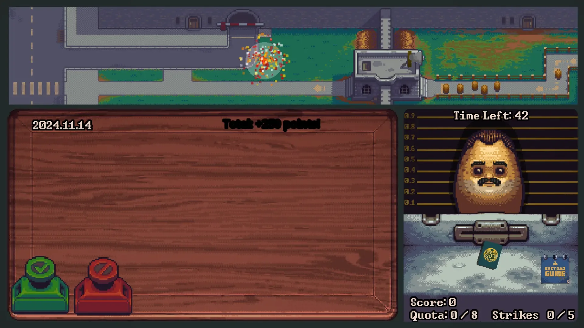 Forced to serve as a border officer, you inspect documents and decide the fate of potatoes. When the ones you reject try to storm your checkpoint, you'll need to defend it with missiles! Each choice tests you. Will you follow the cruel rules, or risk everything to help innocent potatoes escape?