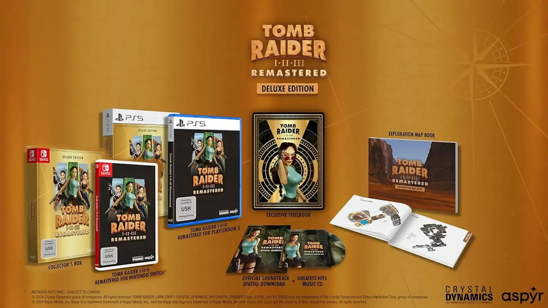 For the first time ever, play the complete experience with all expansions and secret levels on modern platforms in this definitive collection. Deluxe Steelbook Edition includes • Physical copy of Tomb Raider I-III Remastered Starring Lara Croft • SteelBook • Exploration map book (featuring over 80 pages full of secrets, including all maps from all three games and their expansions) • Collectible tuck-in box • The collection's original soundtrack