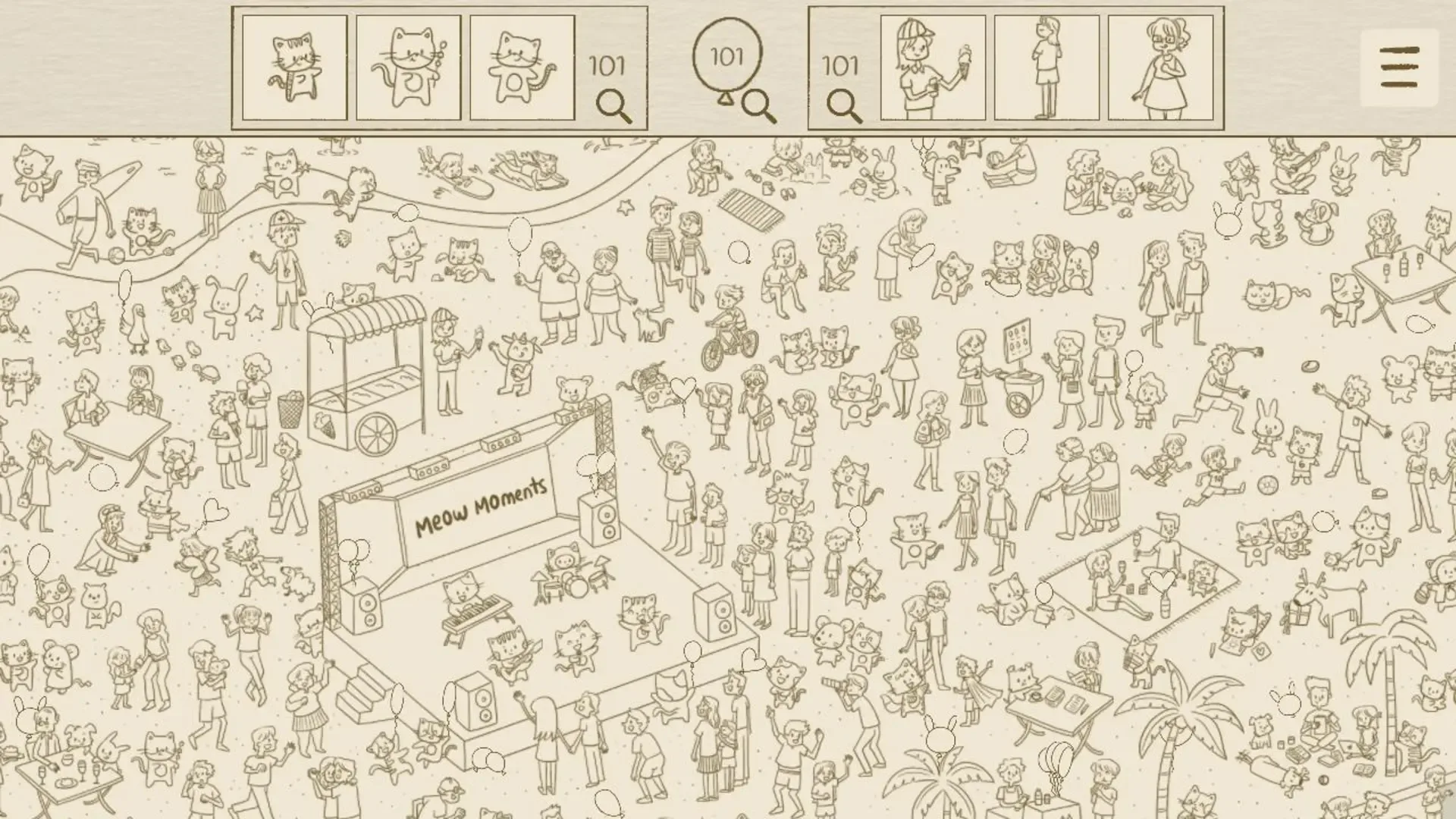 Join cute cats in festive scenes! Find feline friends and pop balloons as you explore New Year's on Copacabana beach and share sweet moments for Valentine’s Day.