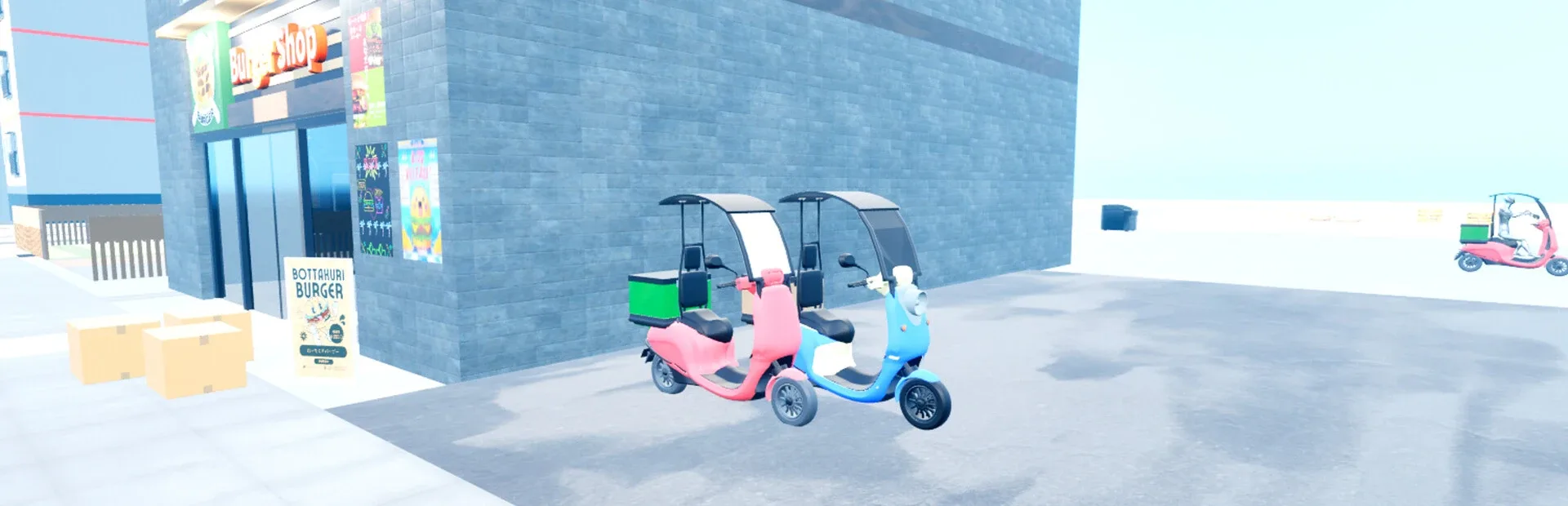 This is a game developed in Japan where you can freely create hamburgers. You can use your bike to deliver burgers to your customers with a unique delivery system