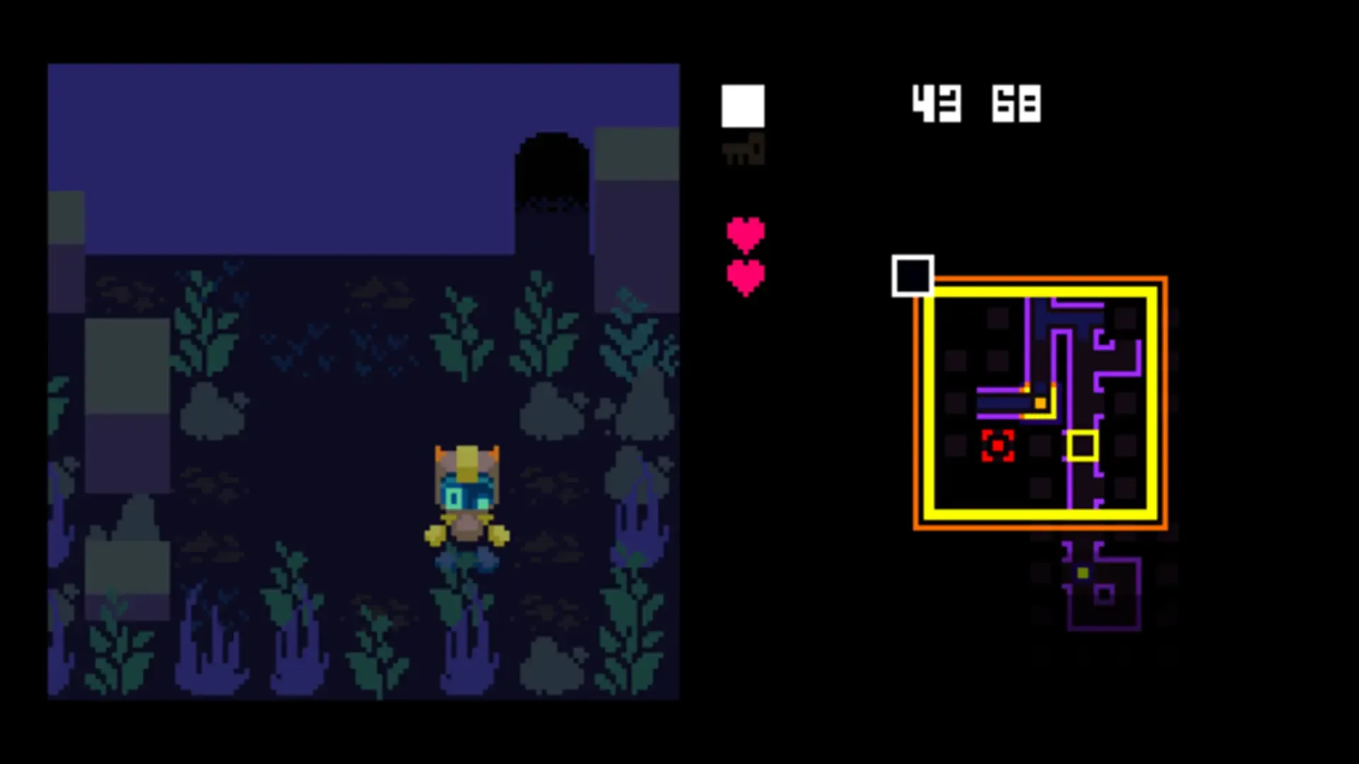 Dequivsia is a puzzle game developed by Nishikigatsuo in which you navigate to a maze-like structure and collect keys. Some rooms are holes, and entering them costs a life. Each room has an hint of how many solid rooms are around, needing a minesweeper-like strategy for navigating the maze.