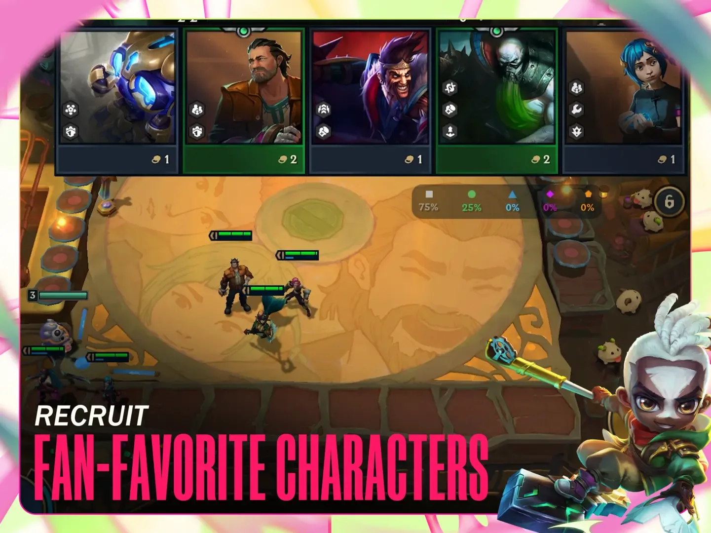 Golden Spatula is a champion auto-battler strategy mobile game. It is one of the ‘TFT franchise’ titles together with Teamfight Tactics and Teamfight Tactics Mobile from Riot Games, and is a mobile-exclusive game built primarily with the mobile audience in mind.