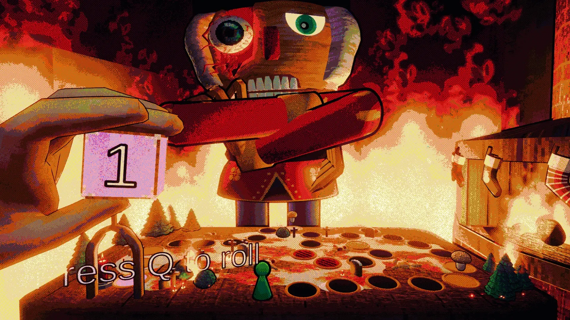 Did you ever want to meet Santa? Well, now you can! At least if you can win a match of Nutcracker Run! Sir Creakwood is ready to take on any opponent—do you have the skill (or luck) to beat him? Roll your way to victory and burn this old wooden creature... for real... please, do it, this thing creeps me out! Who the hell designed these things?!