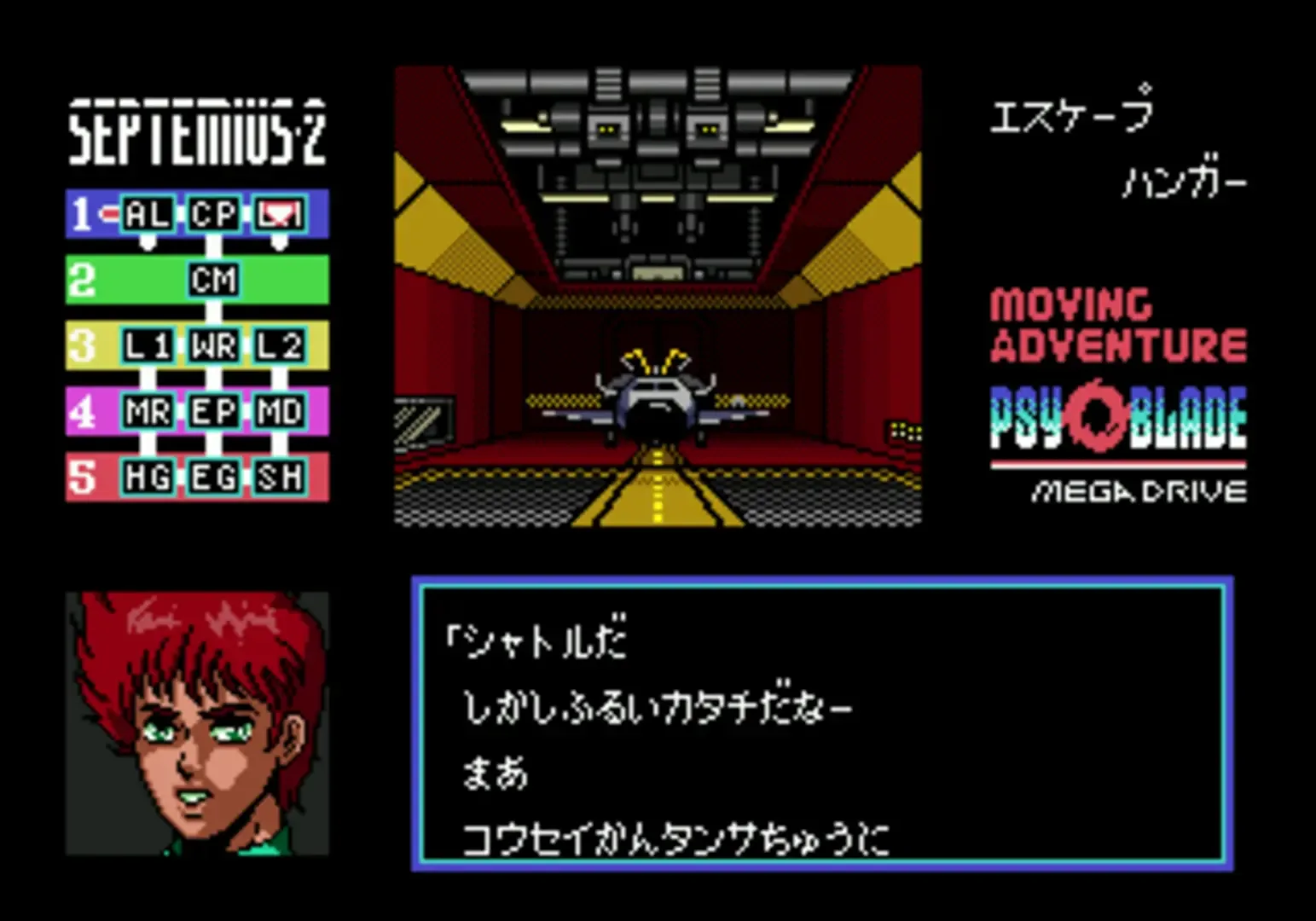 In 21th century, there are three main powers on the Earth. The free world and the communist block carried over from the 20th century; the third power is the New Communist Federation. Since a program of denuclearizing was supported by all those powers, the New Communist Federation developed a devastating non-nuclear weapon: the satellite "Raiden". The two other powers competed with the New Communist Federation, developing their own killer satellites, and the danger of total annihilation became once again an issue. Seeing no future for the Earth, humans started to colonize other planets. In 22th century, they sent an experimental ship "Septemius 1" to a star six light years far away from the Solar System. The ship's main computer, "Racoon", sent a strange message before stopping any communication. Keith McDonnell, a seventeen-year-old crew member of the ship "Septemius 2", was sent to investigate the strange disappearance. Psy-O-Blade is a Japanese adventure in anime style. The player interacts with the game world by moving a cursor and clicking on objects to examine or use them, and people to talk to them, or by choosing options ("Move" and "Scroll") from a menu. There are no puzzles to solve; the player advances in the game by talking to characters, visiting different locations, as well as examining and using objects.