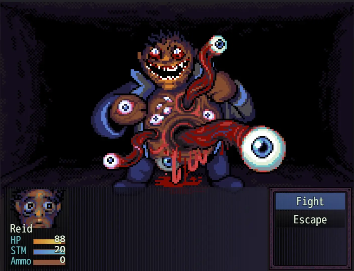 Explore the warped interior of the apartment building you are stuck in. Fight hideous monsters that were once your neighbors. Manage weapons and ammo. Play video games. Craft bombs from household supplies. Cook. Answer the door. DONT let them in. Keep yourself alive and sane as the world just outside your window stops making sense. Just whatever you do... DONT LOOK OUTSIDE A survival horror RPG by Francis Coulombe, with music by Eric Shumaker, made in one month for the Hawktober game jam.