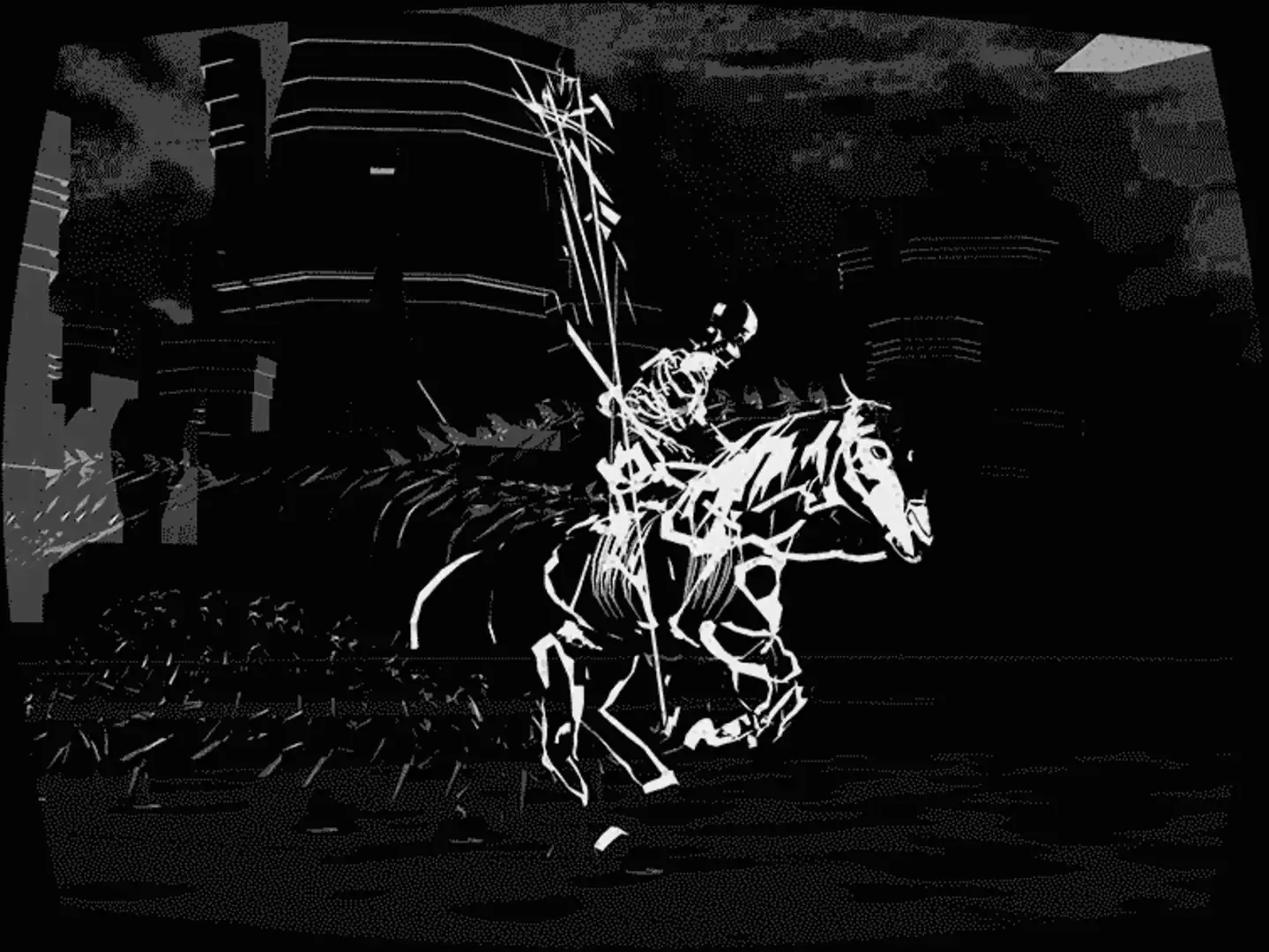 Death rides forth. Cities crumble, forests fall. At the edge of shadows, tears spill, and the barren lands bloom to color. Loss. Love. Birth. We start again? A short 10-15 minute bw cinematic sidescrolling adventure.