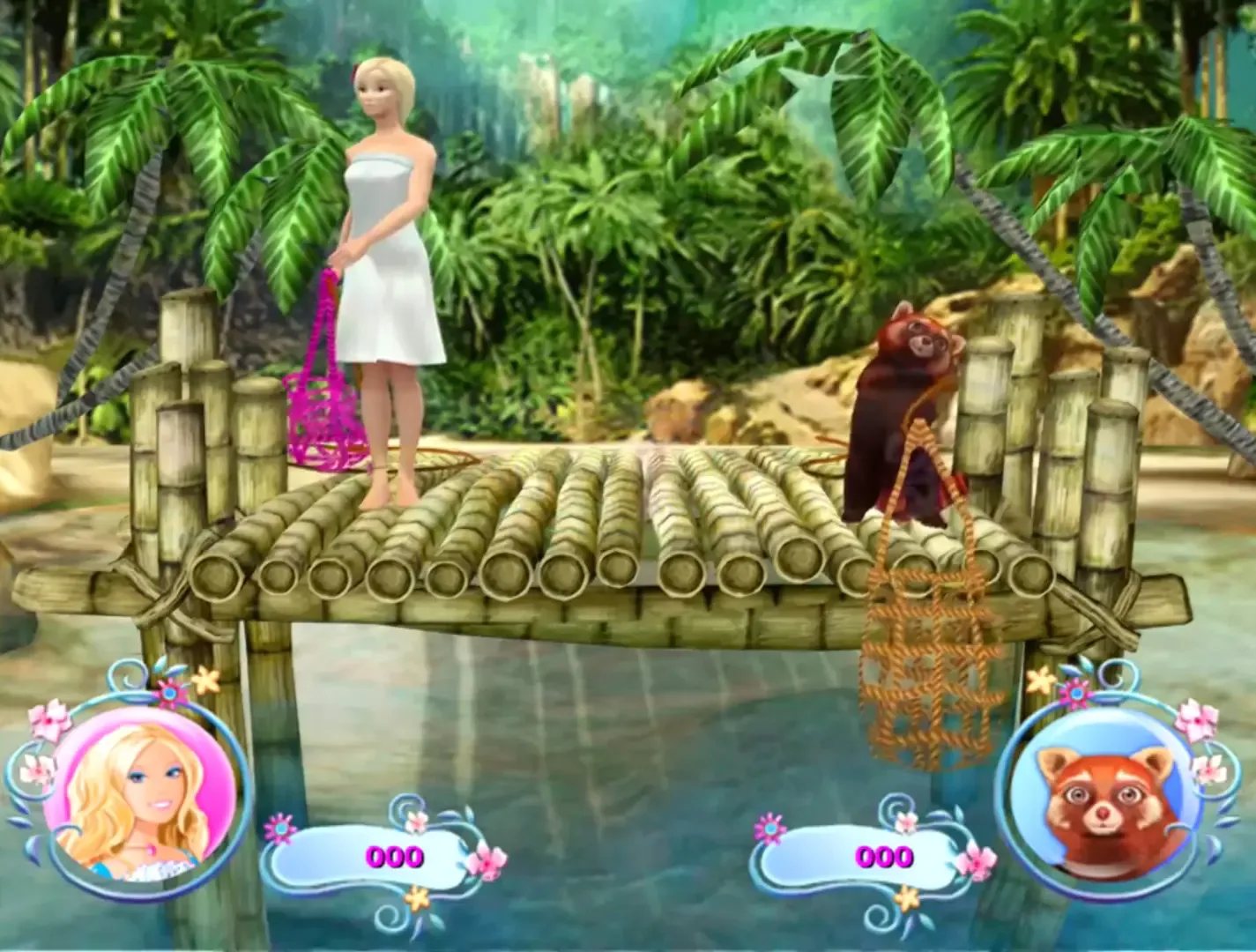 Barbie as The Island Princess follows the storyline of the popular DVD launch in a fun party-style format. You'll play as Rosella the shipwrecked princess who is raised by a "family" of animal friends and rescued by Prince Antonio from her tropical island. Through a series of mini-games featuring music and characters from the movie you will venture from Rosella's island home to the Prince's coastal castle in a fun-filled adventure!