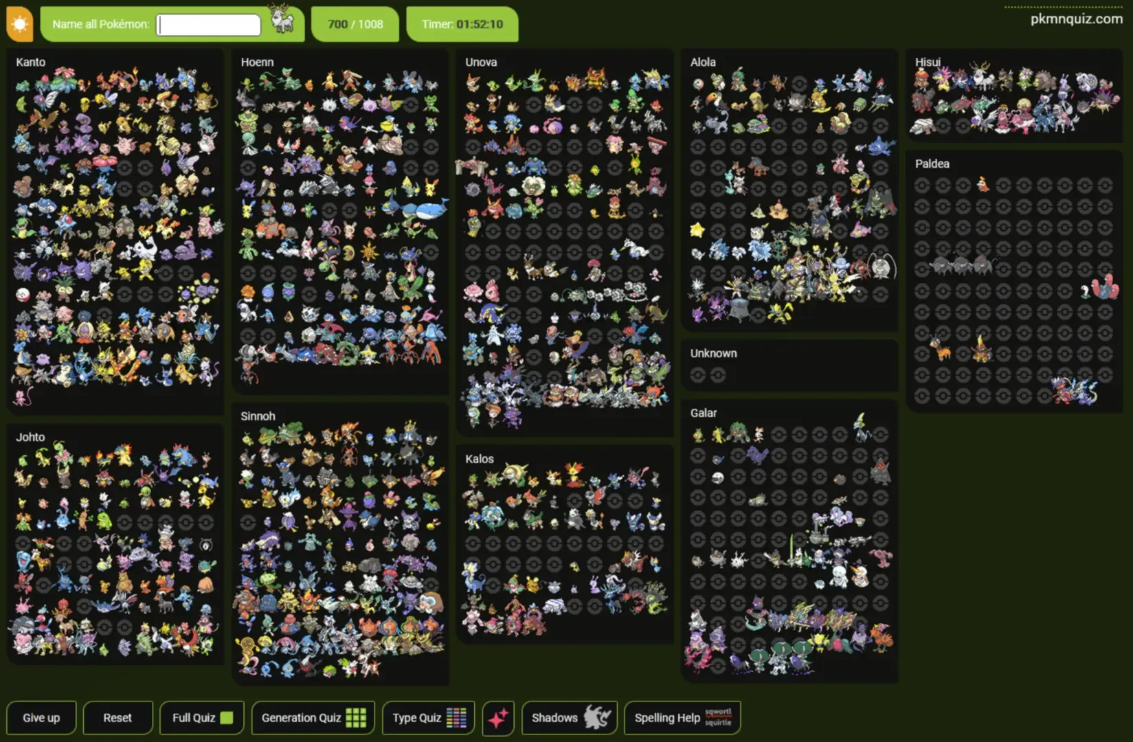 A Pokémon quiz by AdeptCharon. Initially released on name-all-pokemon.herokuapp.com in 2020, it moved to pkmnquiz.com on November 29, 2021.
