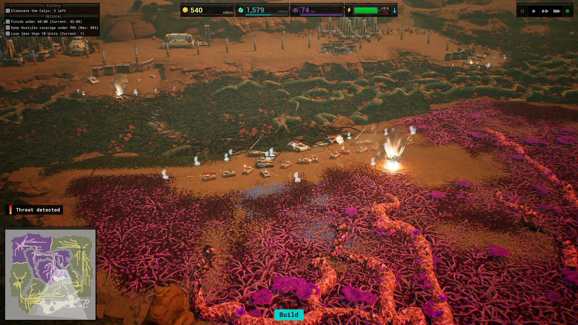A strategy game with a new kind of enemy, Calyx puts you in charge of a space mining outpost, locked in battle with an overwhelming alien organism. Build your base, gather resources, assemble your forces, and take on the Calyx. With only an out-of-date AI for company, can you survive?