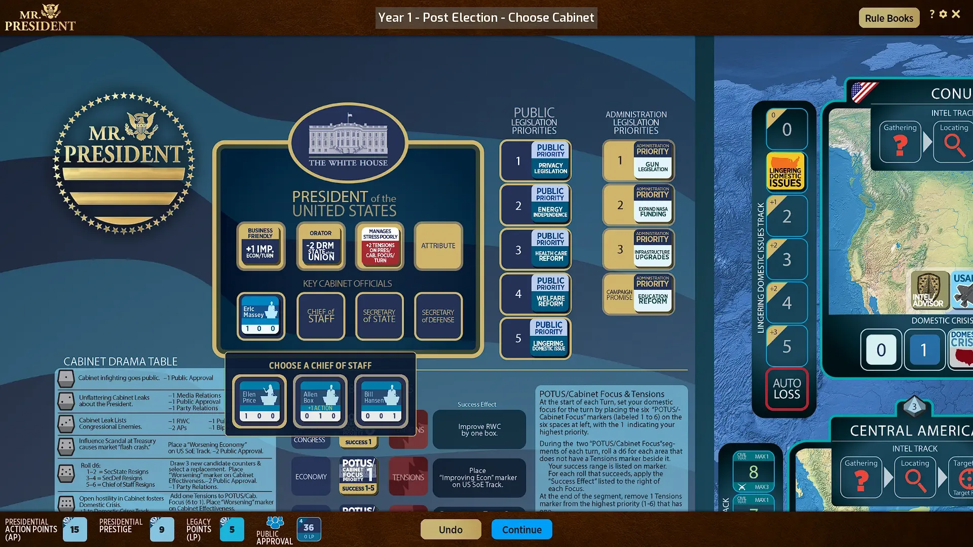 Can you face the challenges of the Oval Office? Find out in Mr. President, a sandbox simulation of the U.S. presidency. Pursue your legislative agenda. Compete with rivals Russia and China. Deal with crises from 9/11 to COVID-19; and direct the U.S. military against terror groups and rogue states.