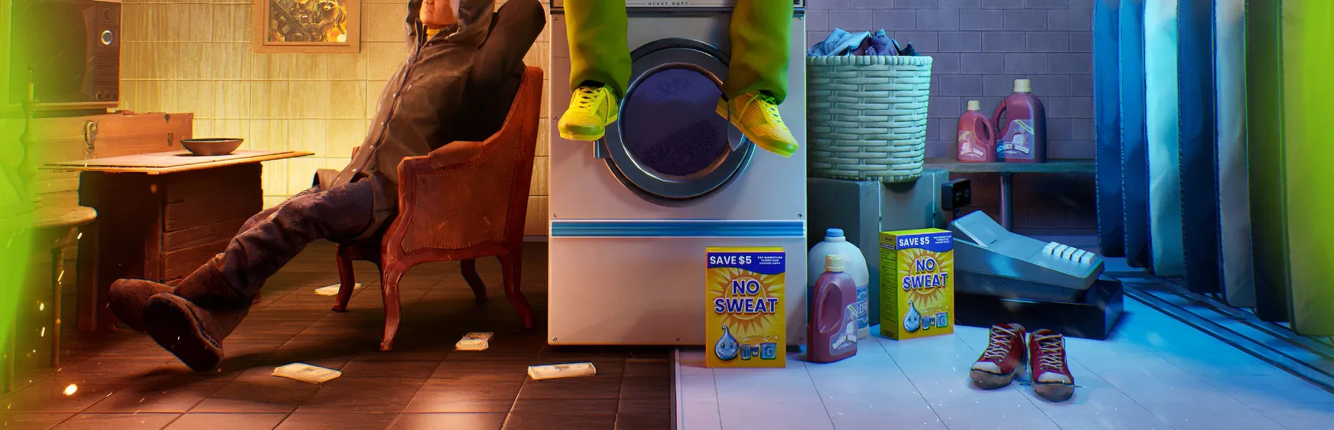 Laundering Simulator puts you in charge of a two-faced enterprise – a laundromat as a front and a counterfeiting workshop hidden in its back. As the shady launderer, Eddie Wiser, you run this unconventional enterprise and deal with small-business management, counterfeiting, a criminal underground, nosy authorities, and a rage-inducing grandmother!