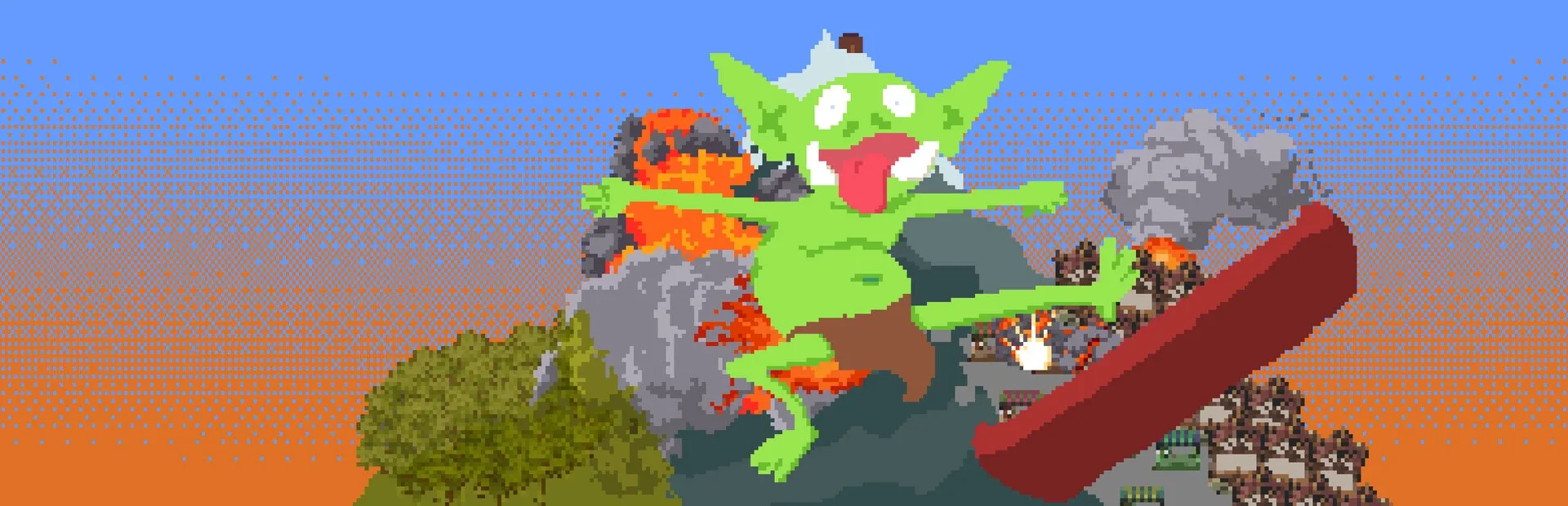 Fast-paced slalom 'em up fantasy roguelite. Play as a radical goblin and his friends with a ton of different powers. Swerve past obstacles, do sick tricks, slam into enemies and collect boons as you make your way to the underworld to catch air off the The Ancient One's Halfpipe.