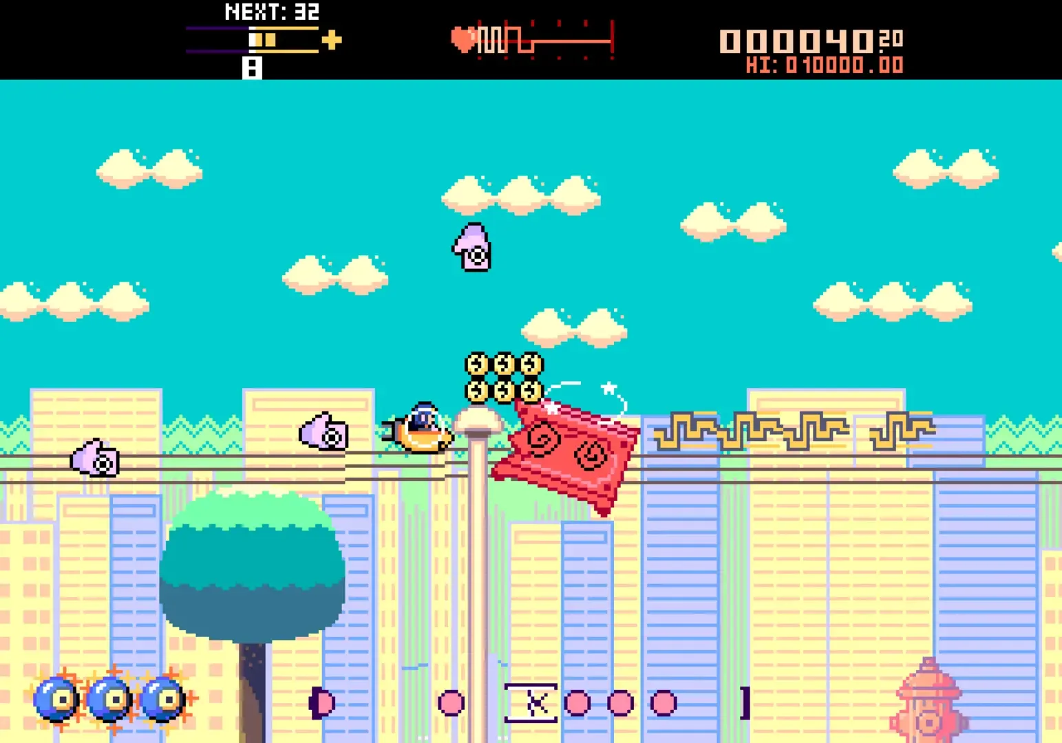 A retro and free-scrolling shoot 'em up. The plot follows a city being drained of electric supply by otherworldly invaders.