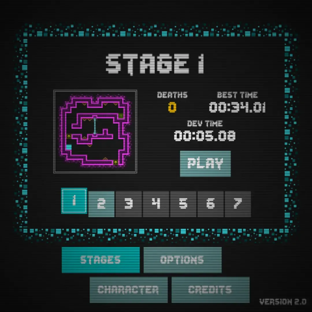 A difficult platformer revolving around the blue box named "Tincan". Navigate Tincan through 7 stages, each one becoming more impossible than the last. With the aid of launch pads and switches, Tincan must now also avoid moving spikes and lasers. Tincan 2 features exciting music by Zack Harmon and graphics by Noel Berry.